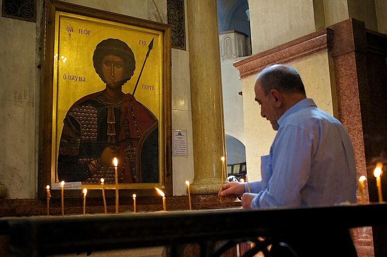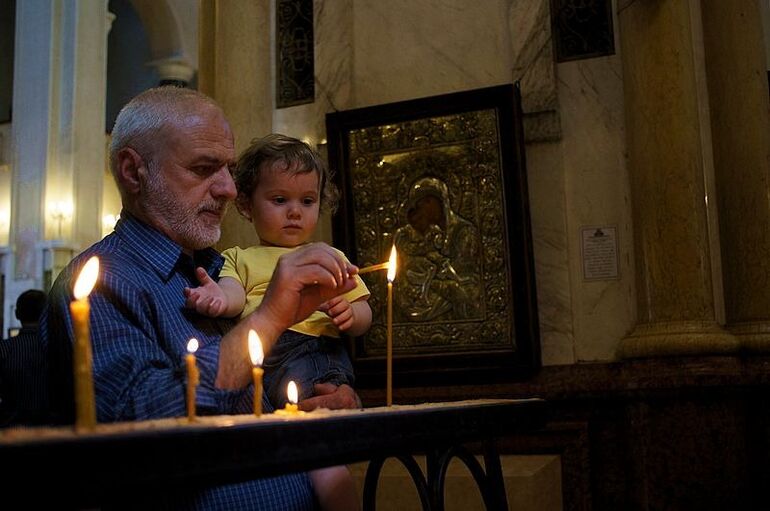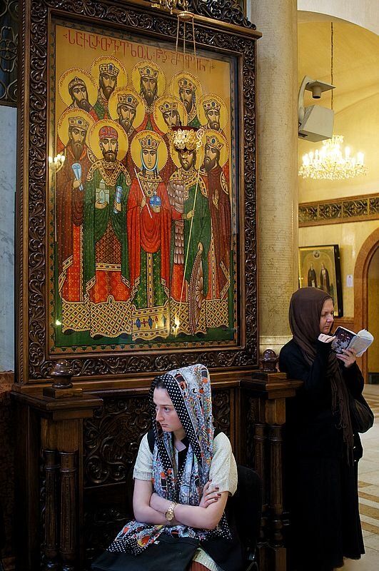 2013. 04.05. 11.07. Кафедральный храм Пресвятой Троицы - Цминда Самеба. Люди во время пасхальной службы