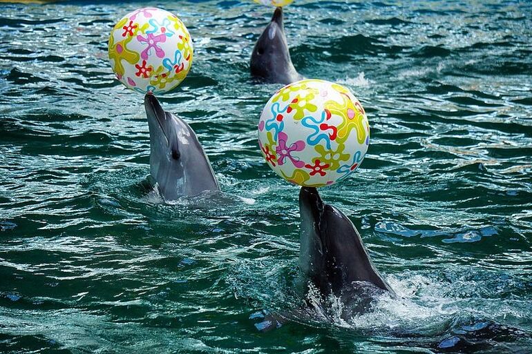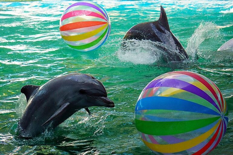2014. 11.06. 16.43. Евпаторийский дельфинарий. Шоу морских животных. Дельфины с мячами
