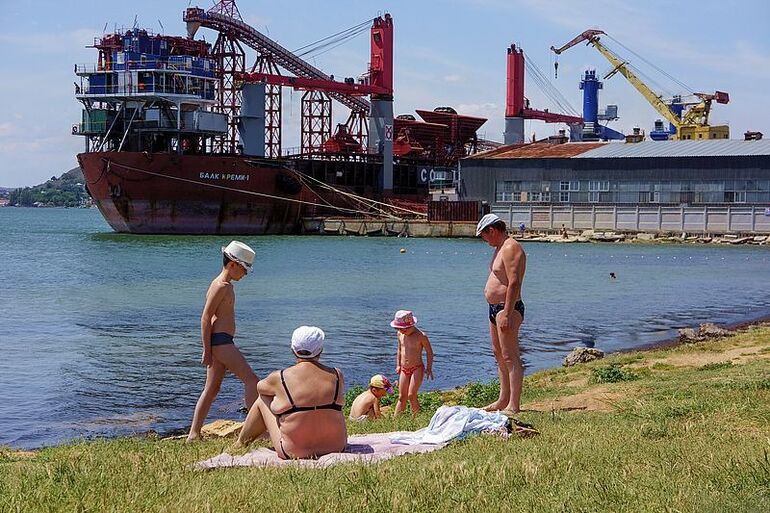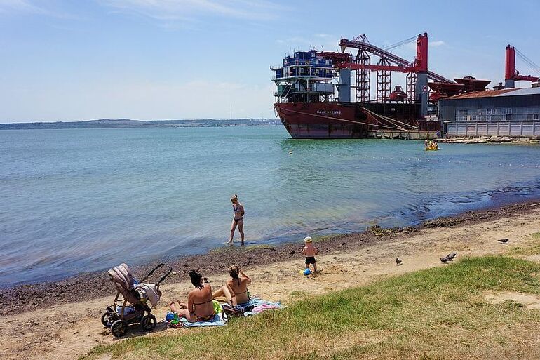 2014. 19.06. 18.35. Пляж «Черепашка». Сухогрузная баржа «Балк Креми»