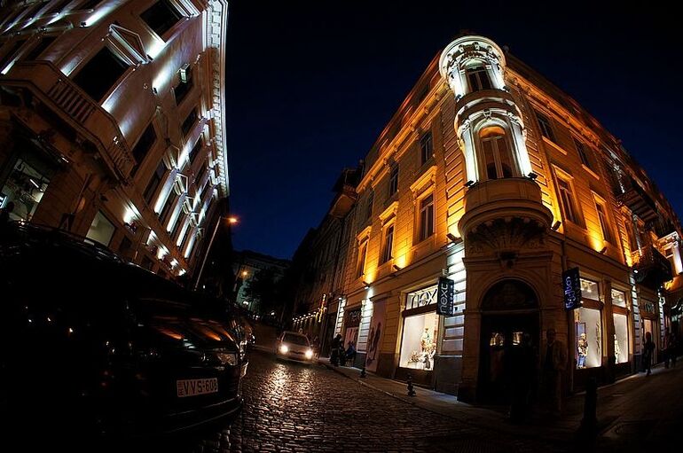29.04. 20.22. Вечерняя подсветка зданий на проспекте Руставели
