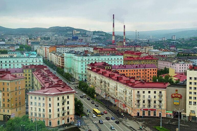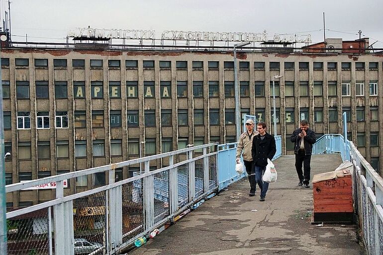 10. 2016. 20.06. Мурманский судоремонтный завод. Мужчины идут по пешеходному мосту