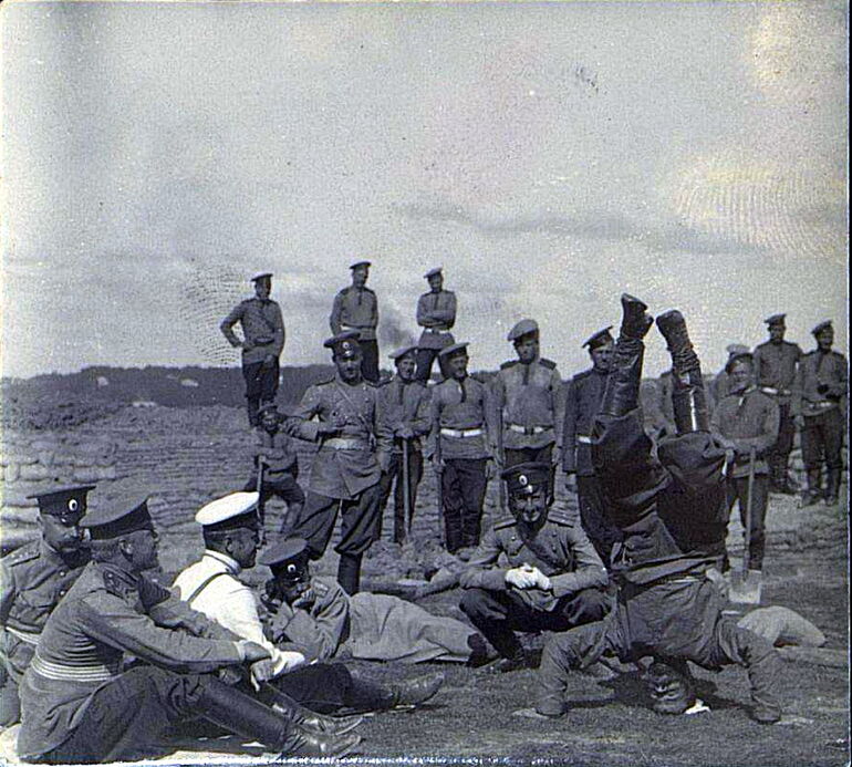 1900-е. Группа офицеров и нижних чинов Л.-гв. Московского полка на постройке редута