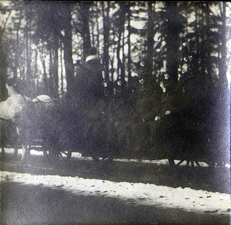 1900-е. Группа офицеров Л.-гв. Московского полка на линейке по дороге в Царское Село