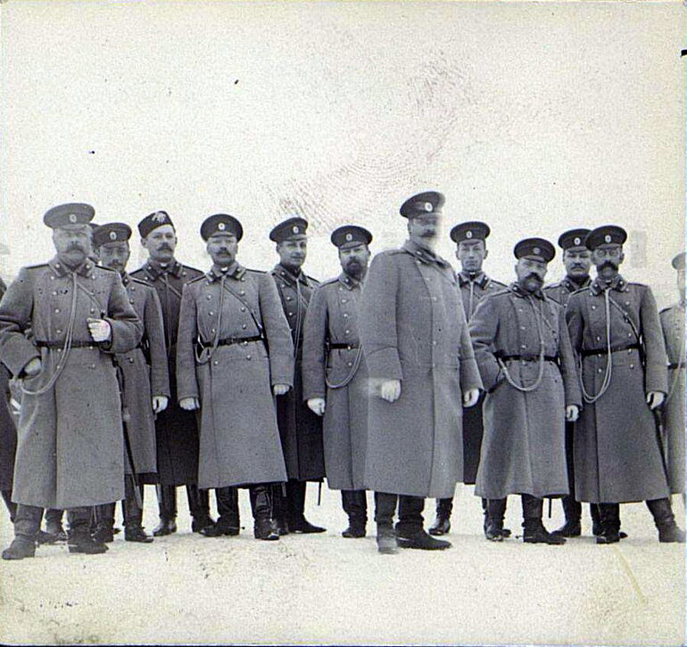 1900-е. Группа офицеров Л.-гв. Московского полка, в центре генерал-лейтенант Н.В. Белов