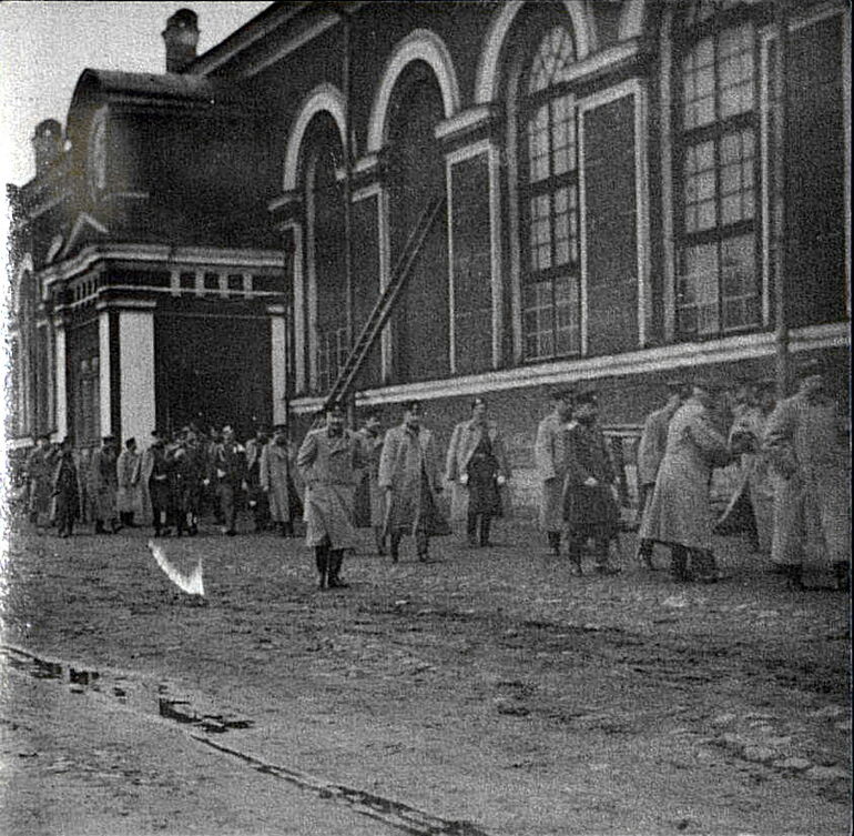1900-е.Выход офицеров Л.-гв. Московского полка из здания Манежа