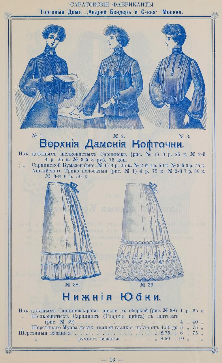 1904. Прейс-курант белья и чулочных изделий Саратовских фабрикантов Сарпинок Торгового дома «Андрей Бендер и С-вья»