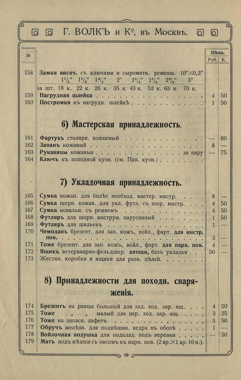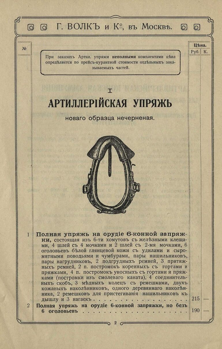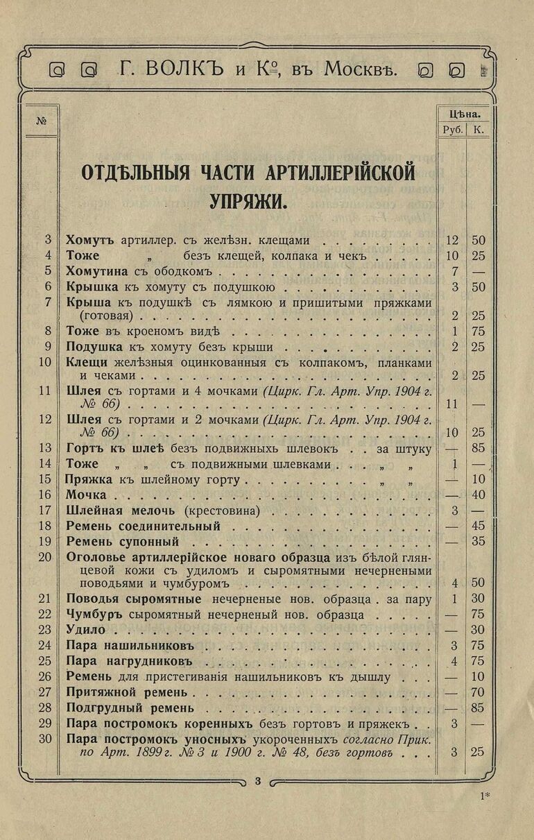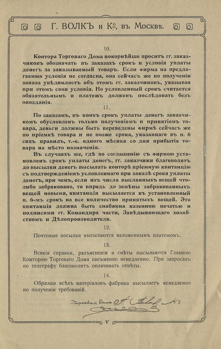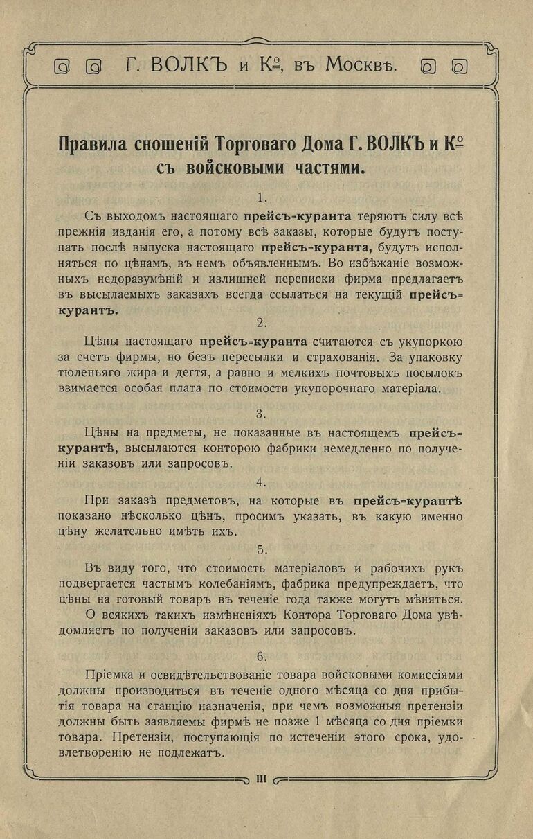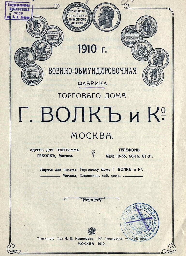 1910. Прейскурант военно-обмундировочной фабрики Торгового дома "Г. Волк и К°". Москва