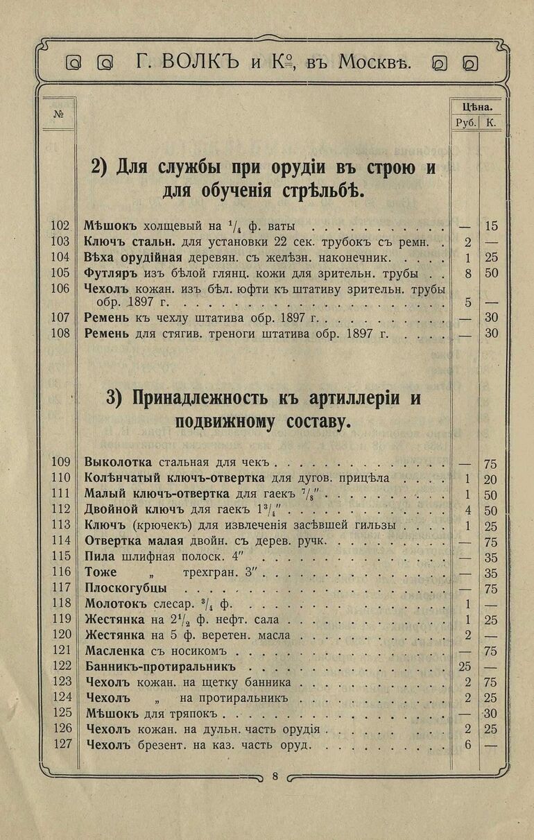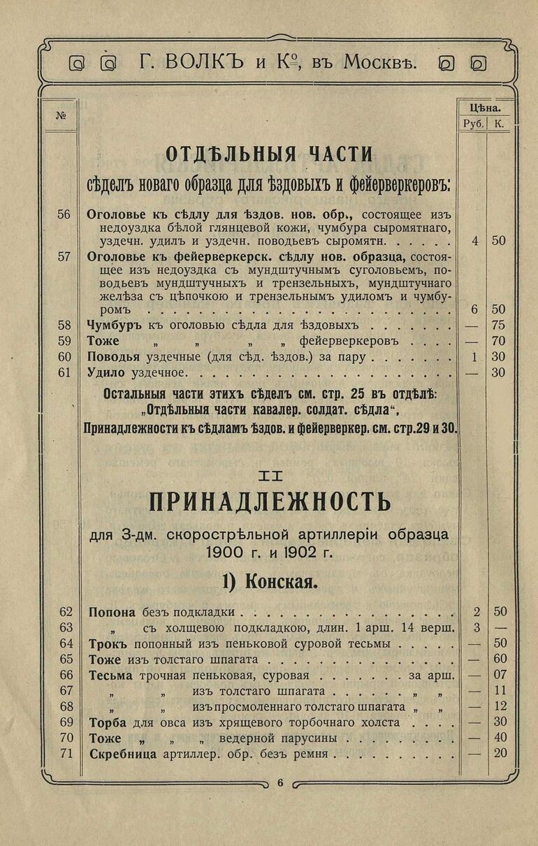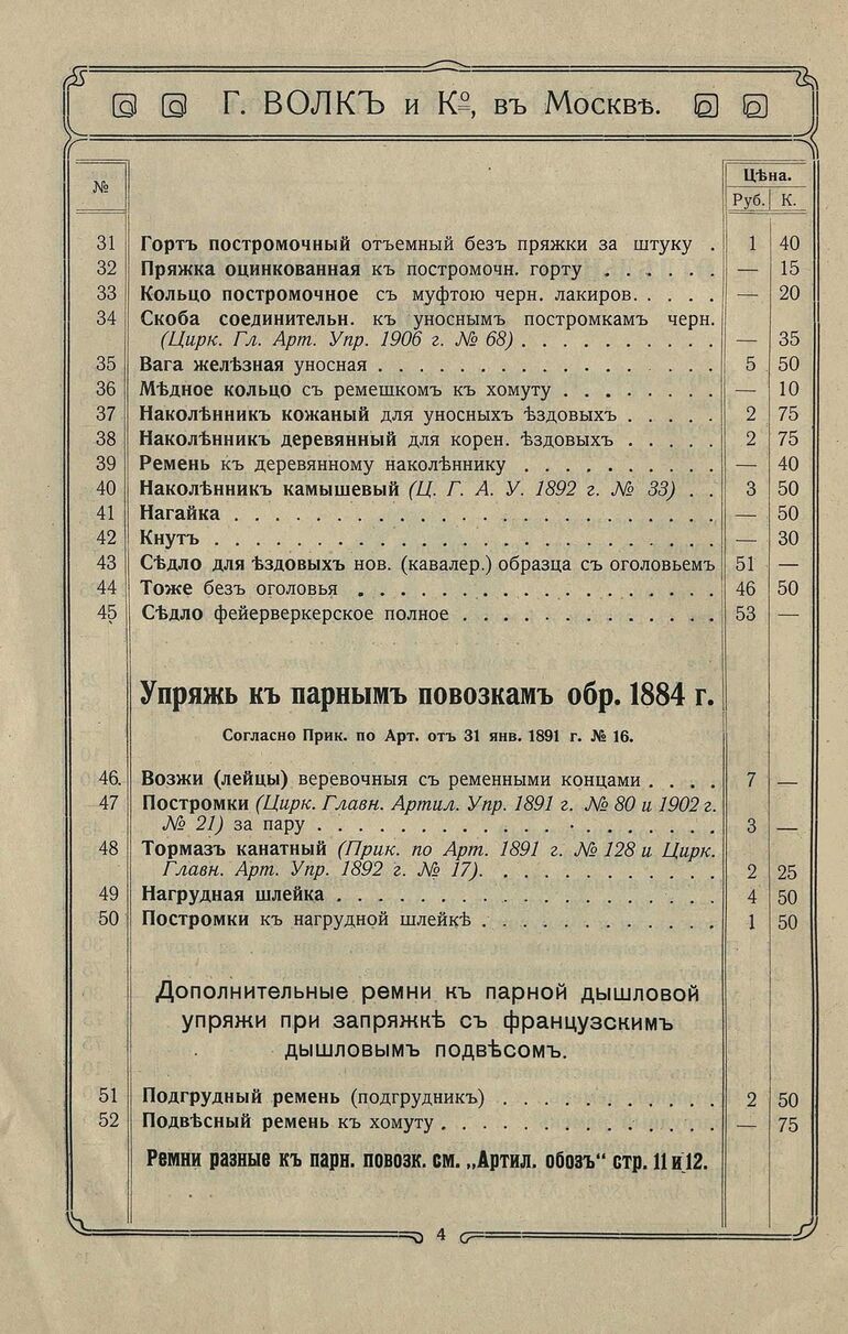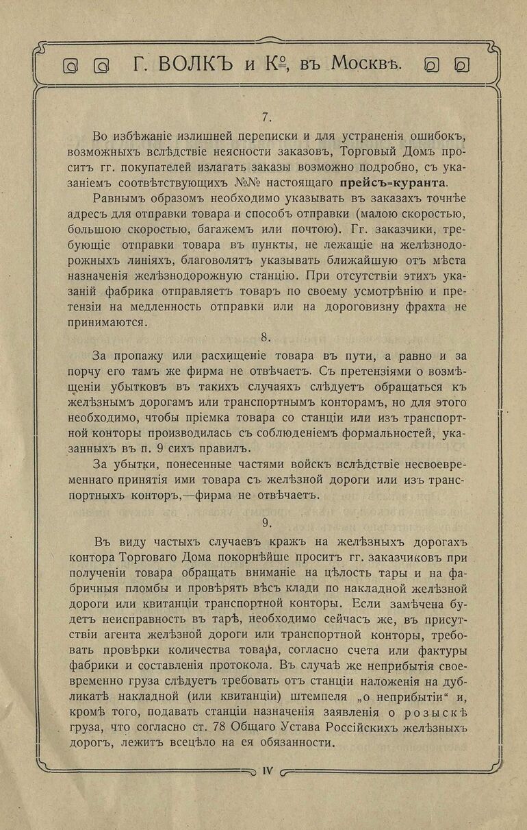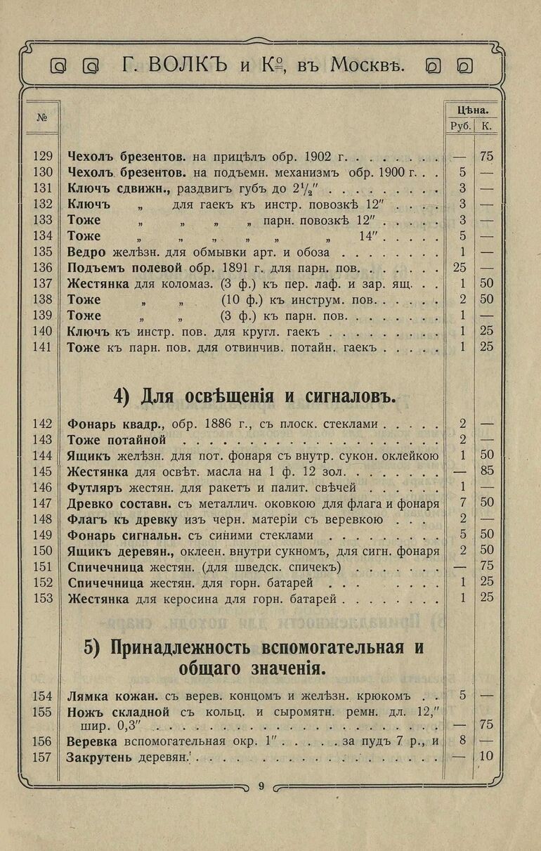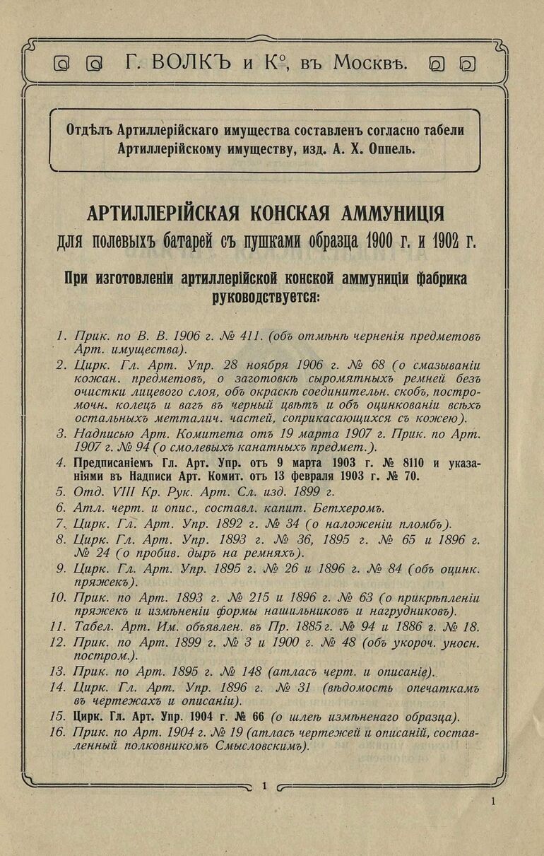 1910. Прейскурант военно-обмундировочной фабрики Торгового дома "Г. Волк и К°". Москва