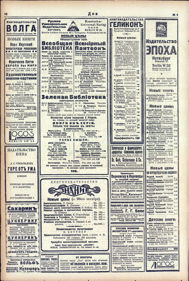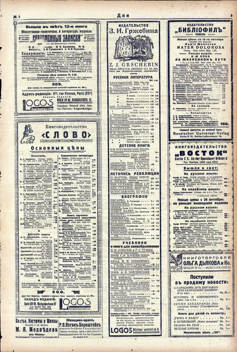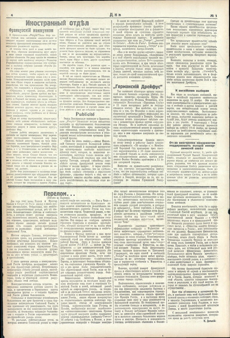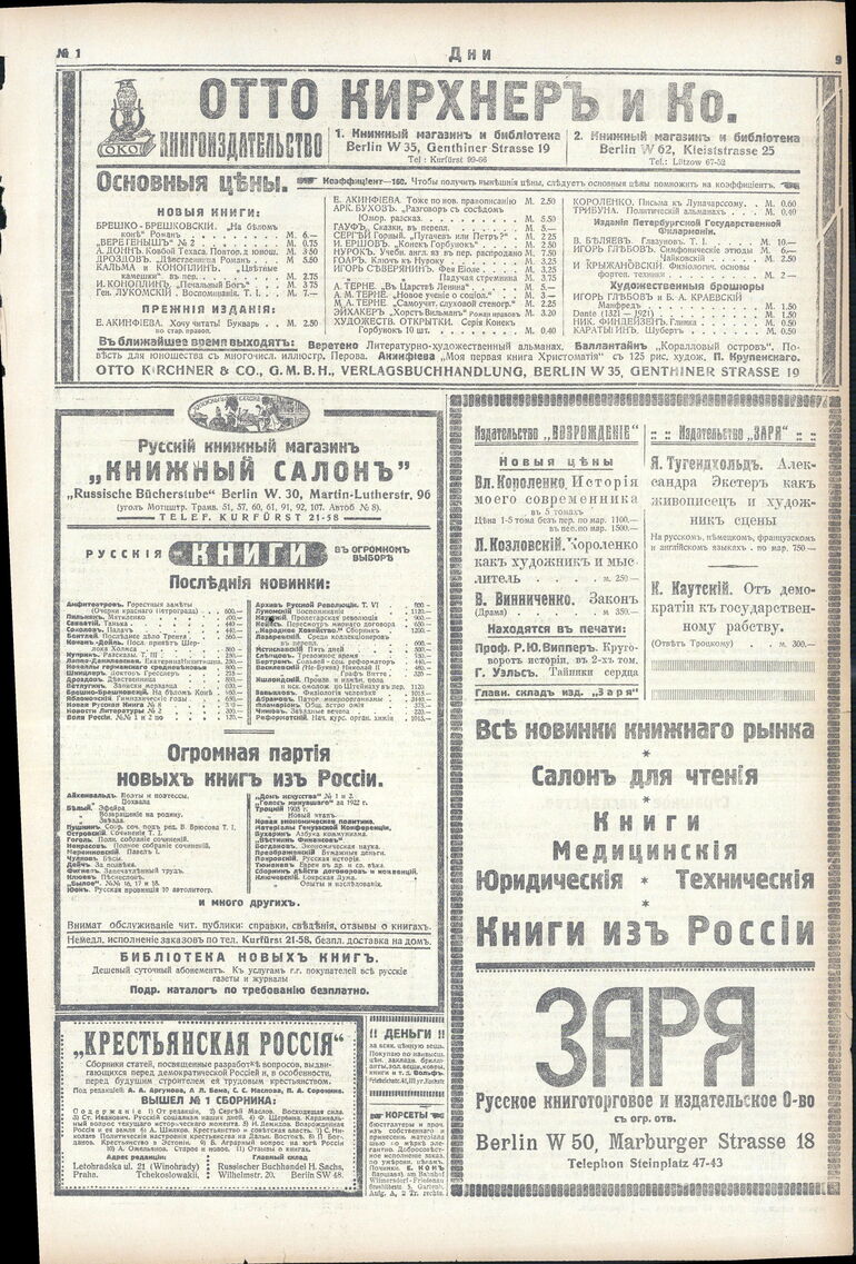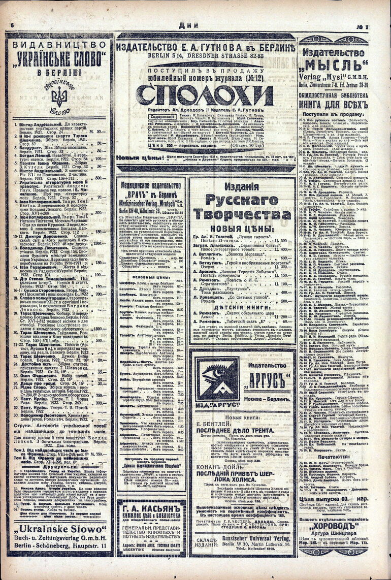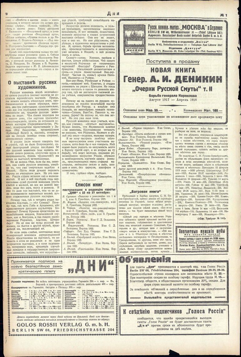 1922. «Дни» (Берлин)