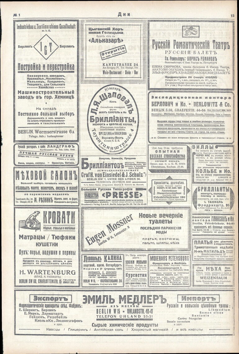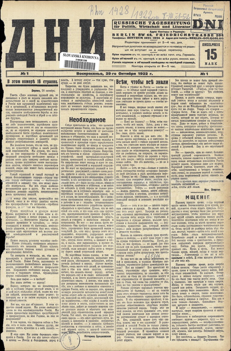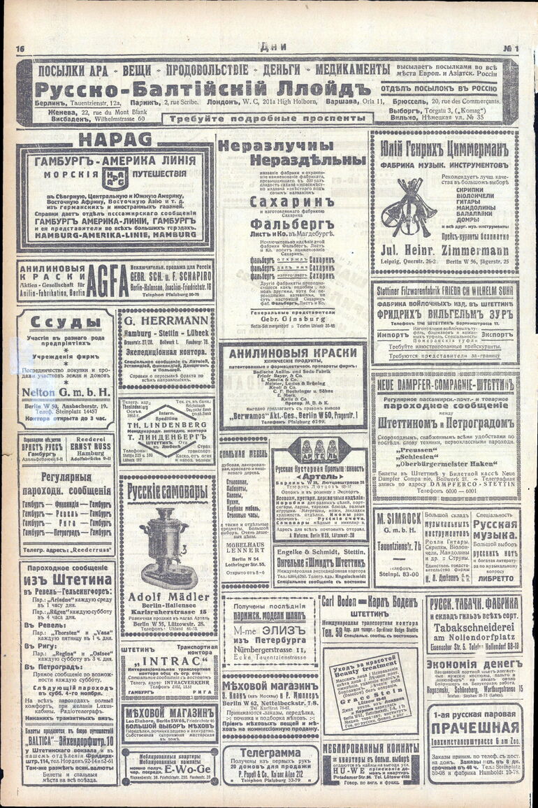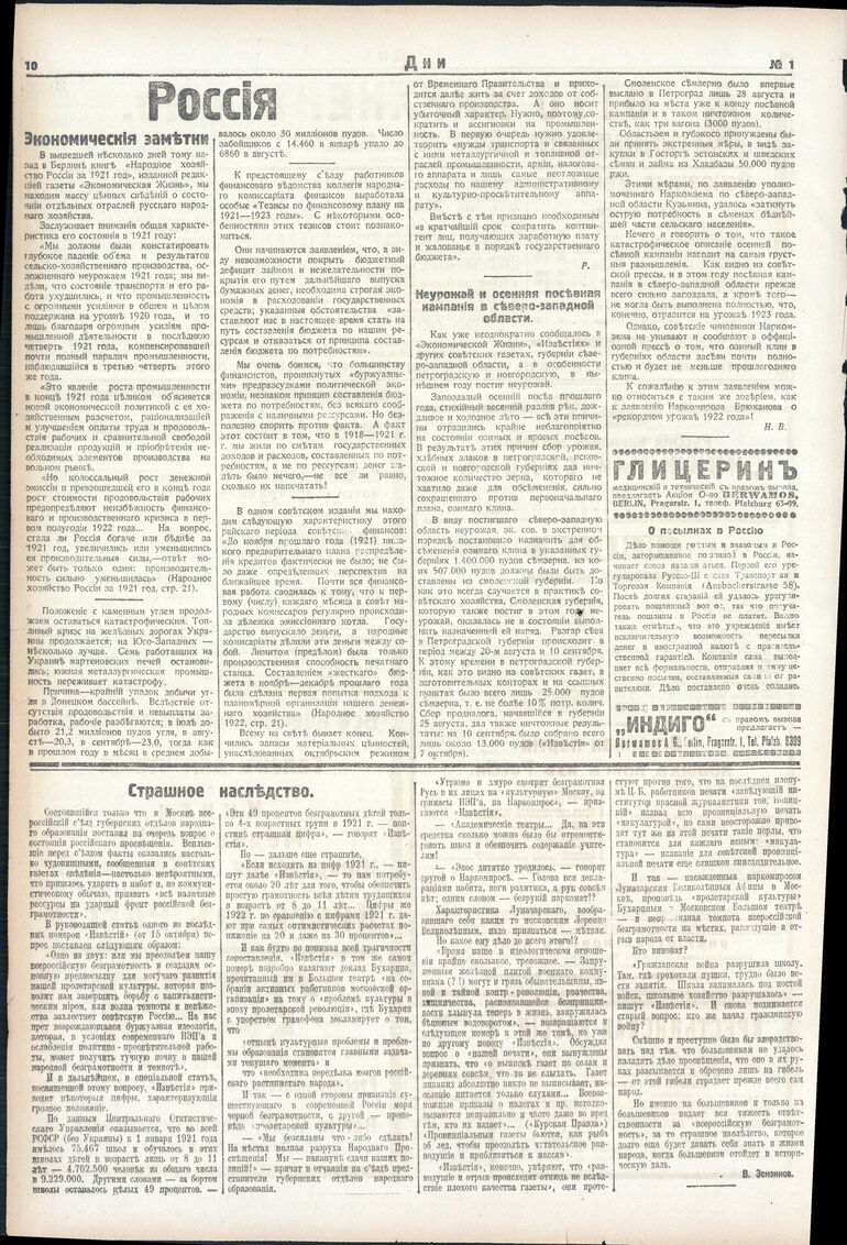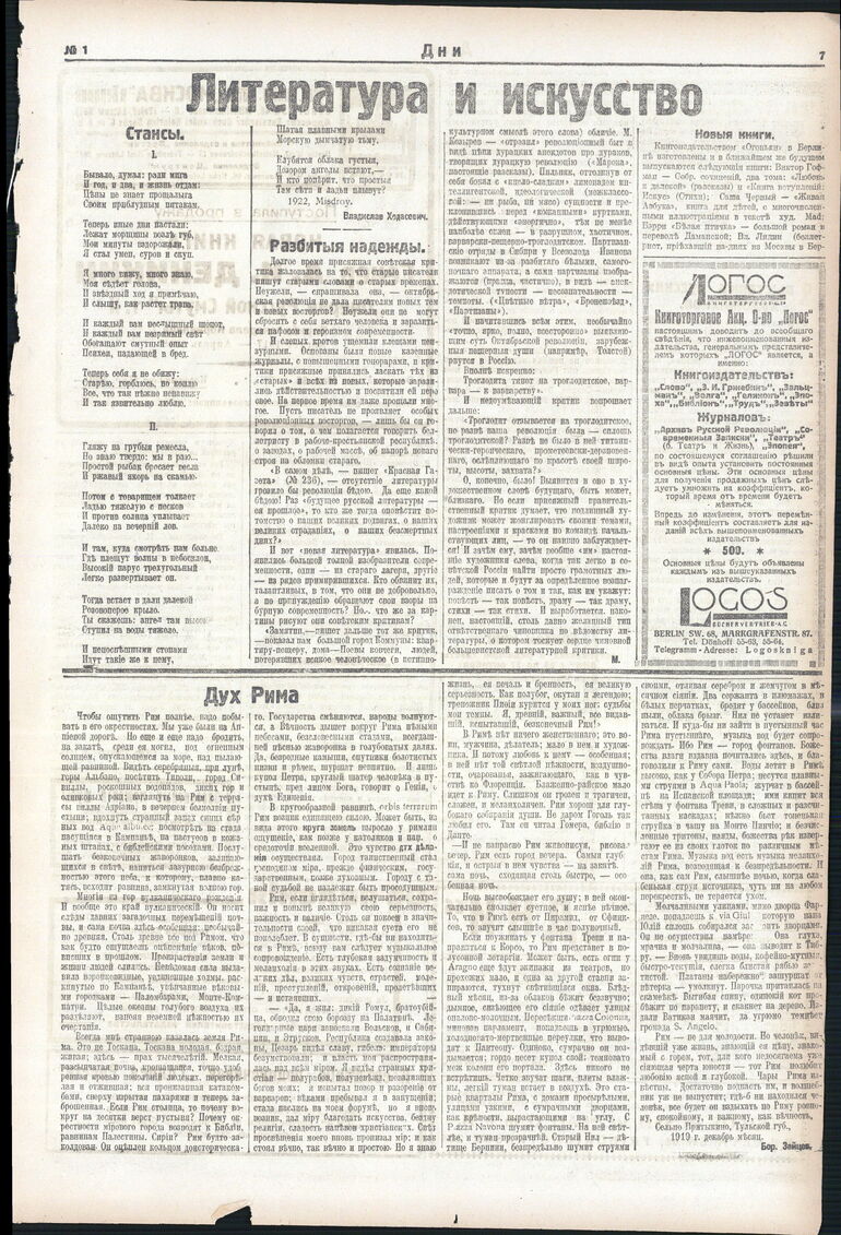 1922. «Дни» (Берлин)