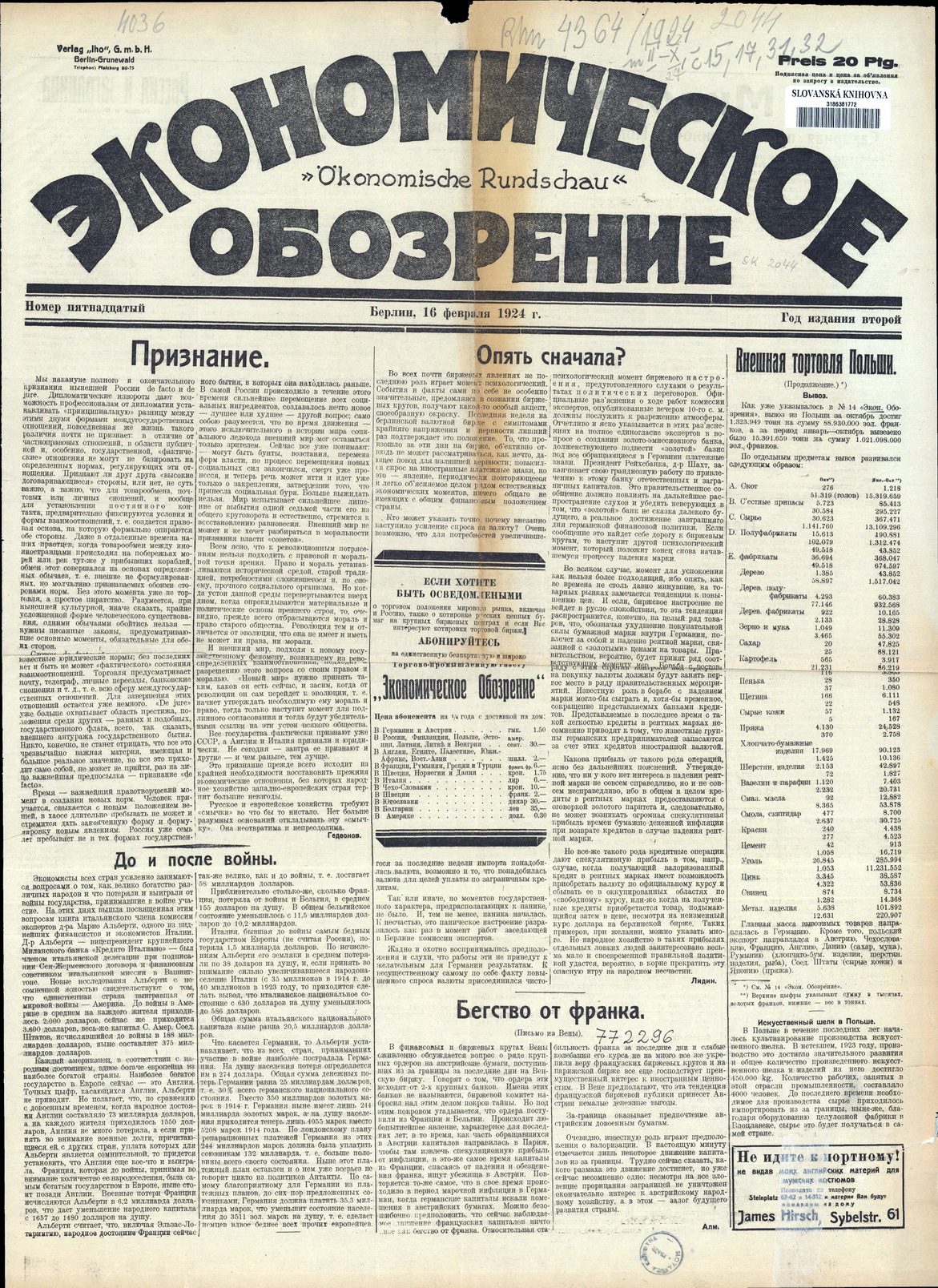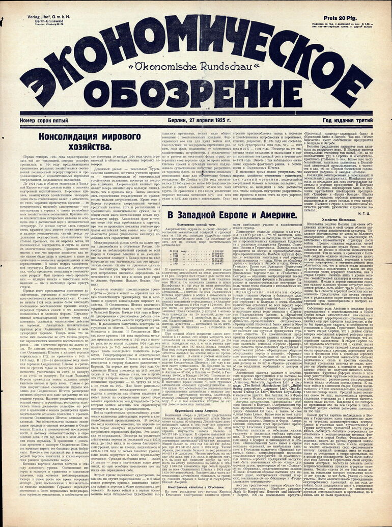 1924-1925. «Экономическое обозрение» (Берлин)