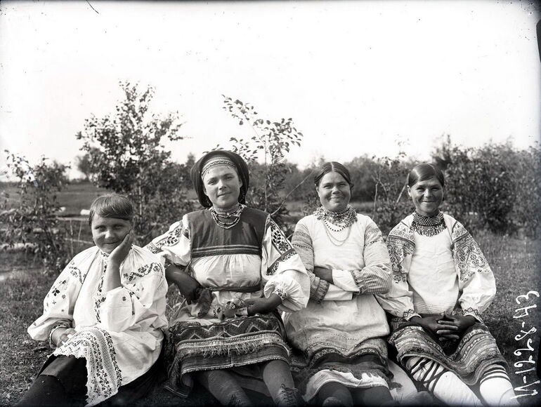Группа девушек и женщин в традиционных народных костюмах