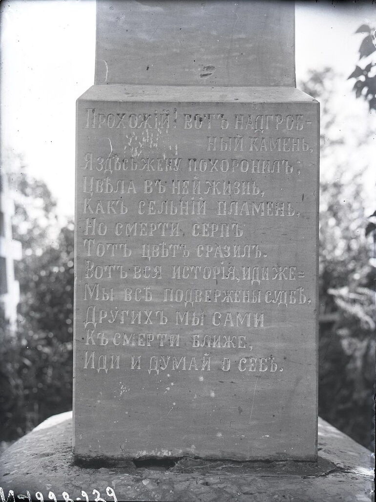Стихотворение, высеченное на постаменте мраморного надгробного памятника