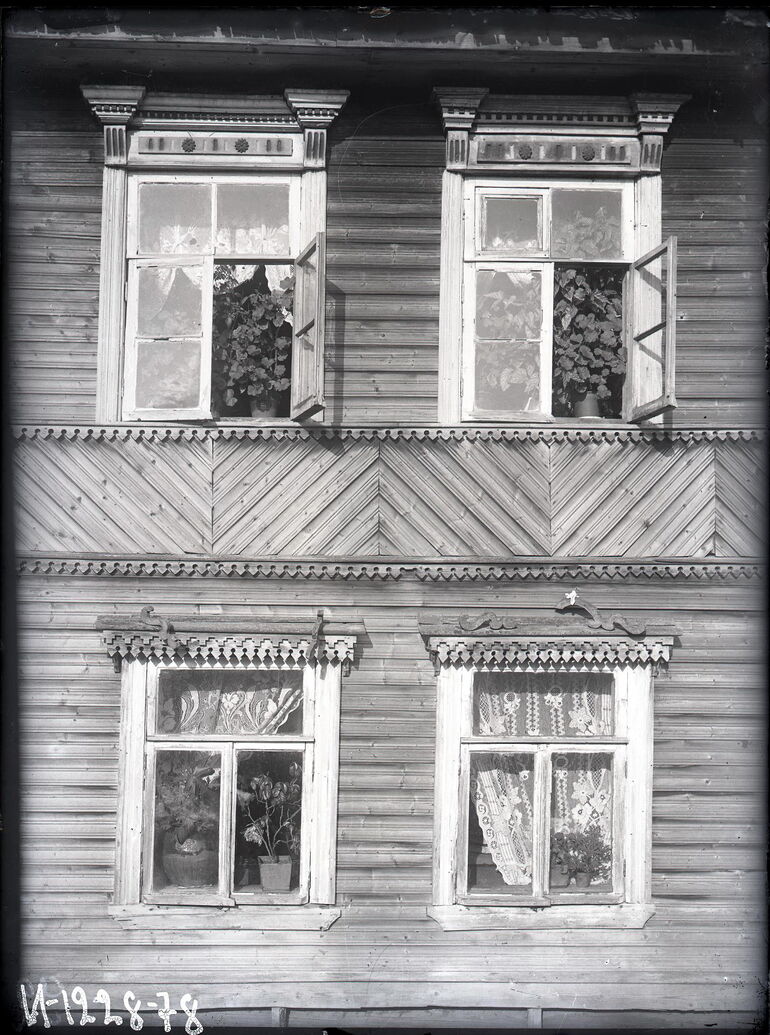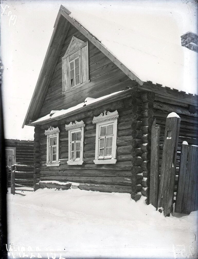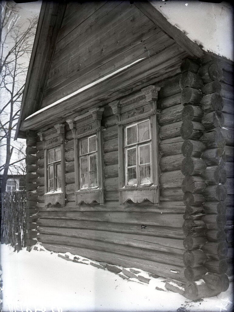 Лицевой фасад дома крестьянина-середняка с тремя разными наличниками