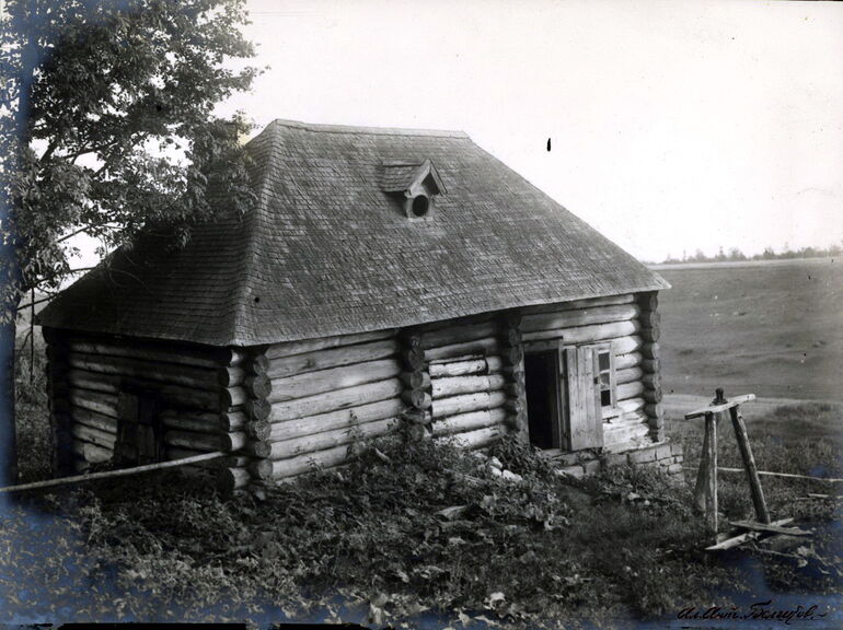 Крестьянин у дома постройки 1850 г. (Барсукова-Торгашева)