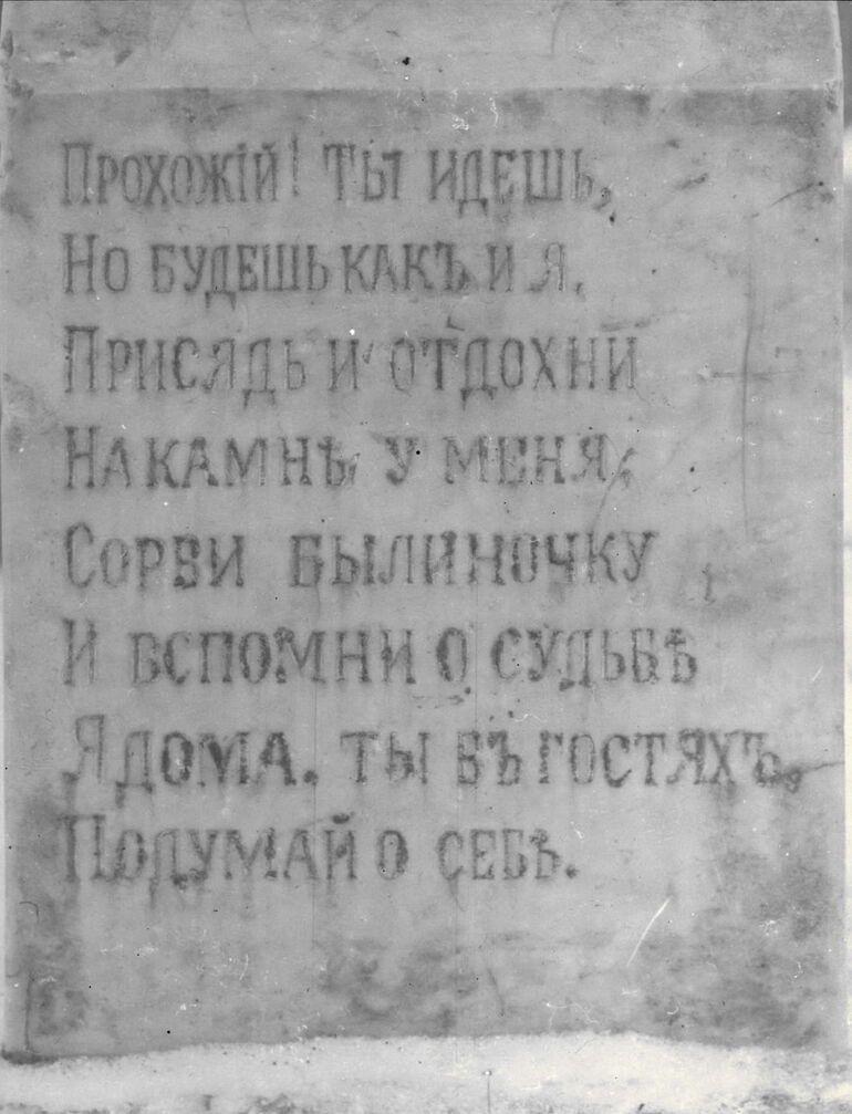 Стихотворение, высеченное на гранитном надгробном памятнике на сельском кладбище