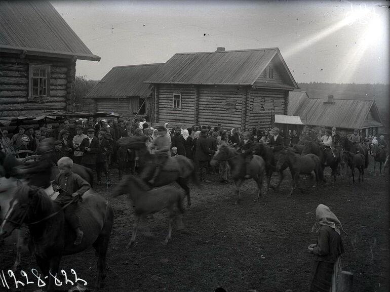Окропление лошадей после общего деревенского молебна