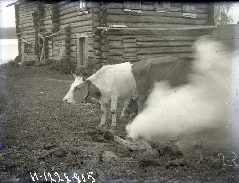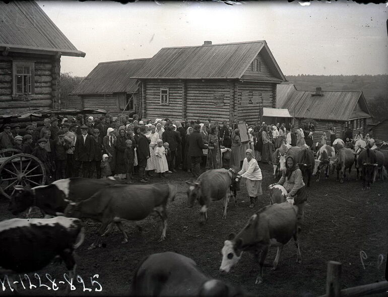 Окропление коров после общего деревенского молебна
