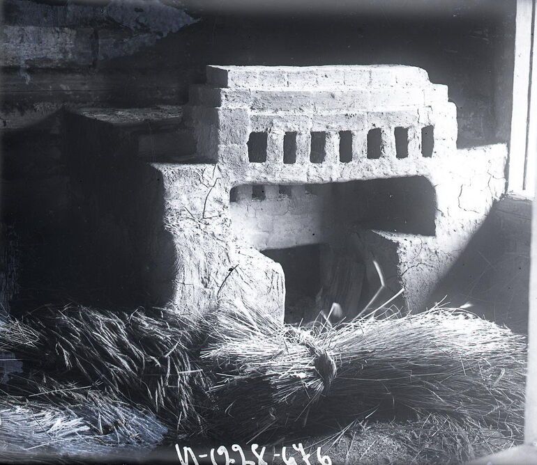 Печь в риге и снопы ржи. Вадлозерский волостной погост