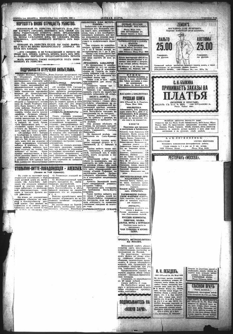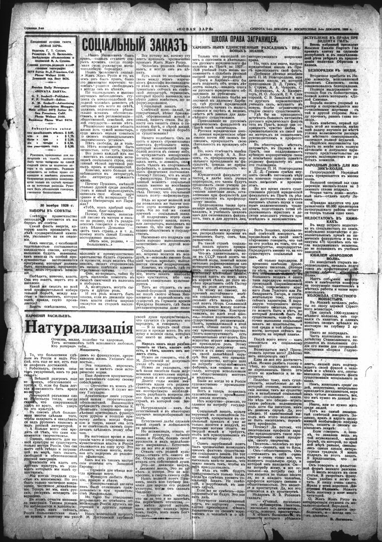 1928-1948. «Новая заря» (Сан-Франциско)