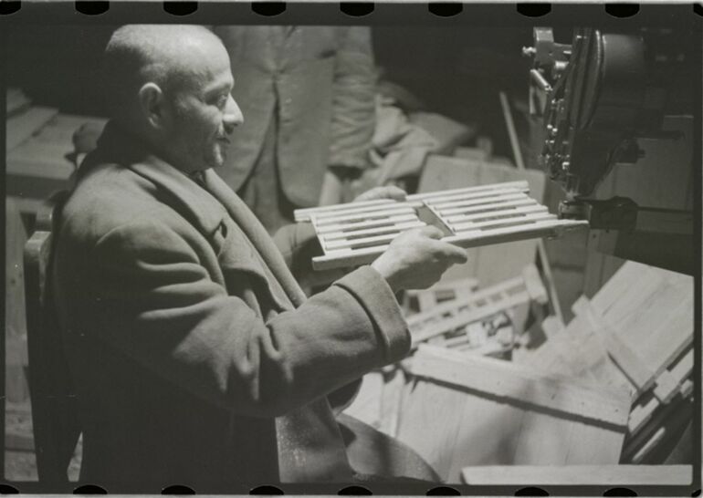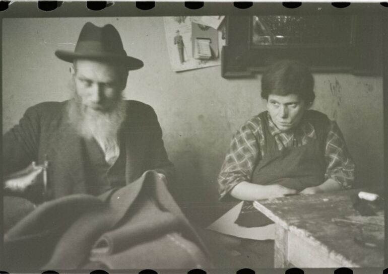 Портной Лейба Херш Вайс и его жена, швея Райзель Вайс в своей мастерской