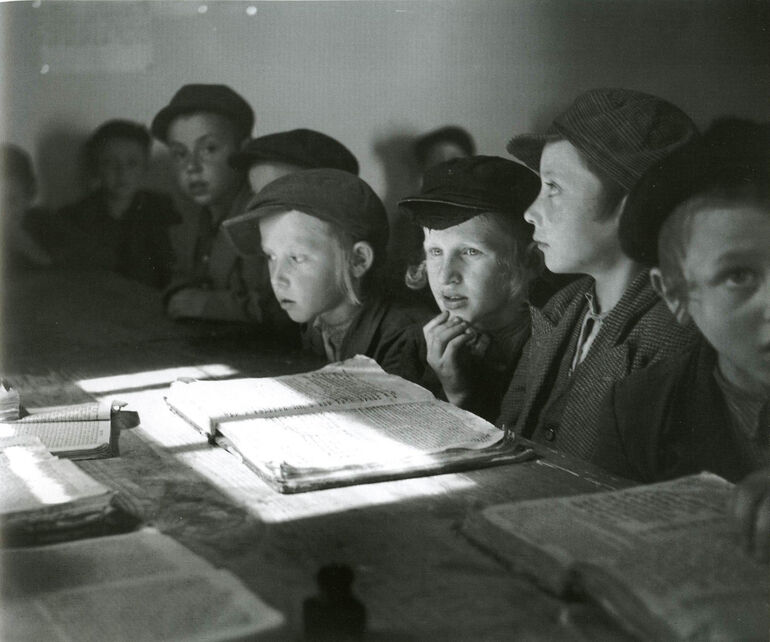 Броды. Дэвид Экштейн, семь лет, и одноклассники в хедере (еврейская начальная школа)
