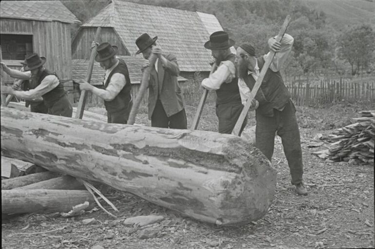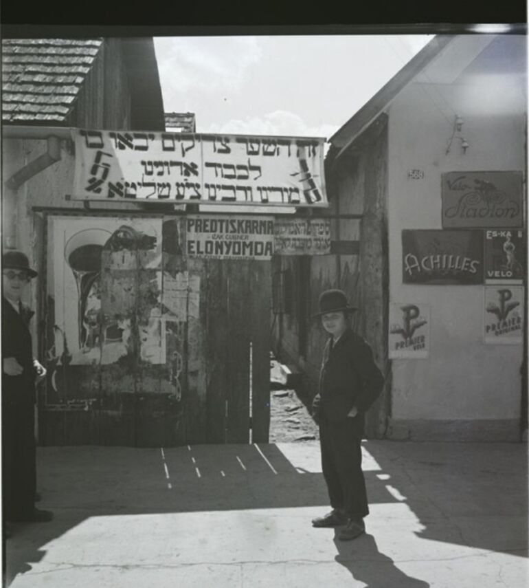 Мужчины у входа в Еврейский Центральный Молочный Кооператив, Ясин, недалеко от Рахова