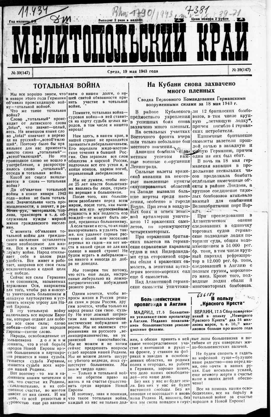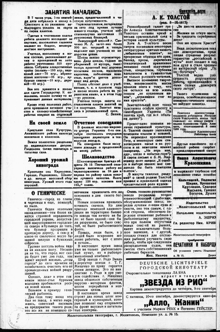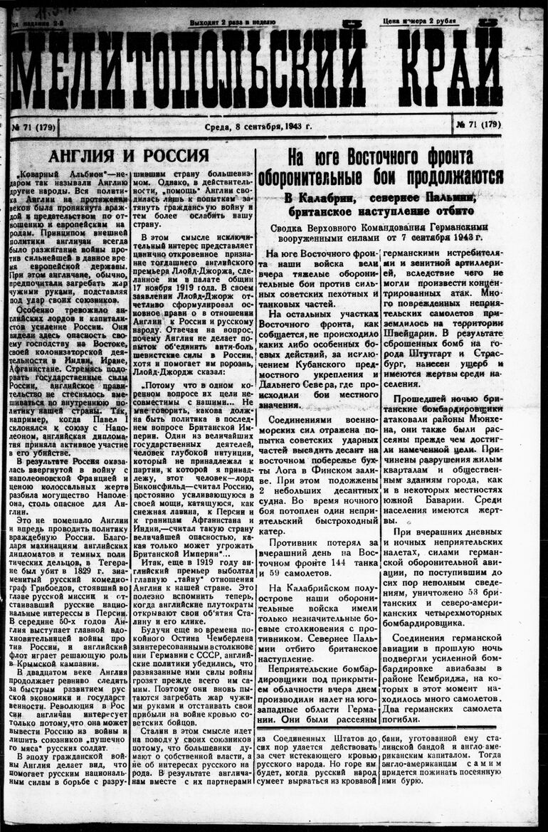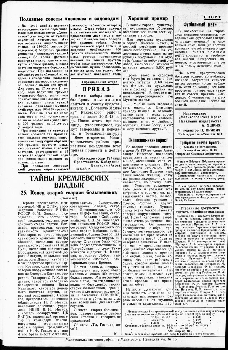 1943. «Мелитопольский край» (Мелитополь)