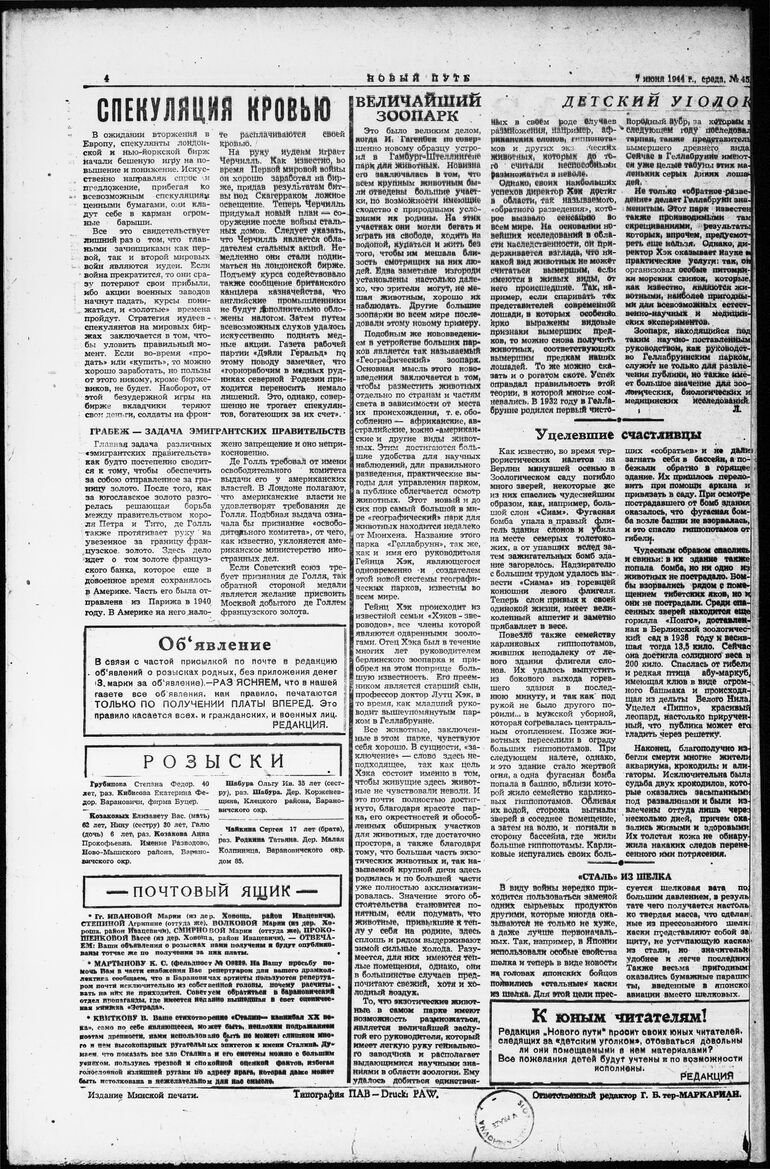 1943. «Курьер родины». листок известий для эвакуированных (Винница)
