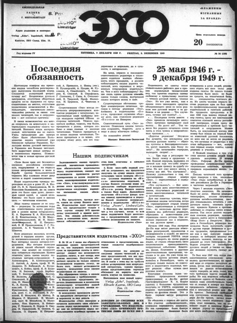 1946-1949. «Эхо» (Регенсбург)