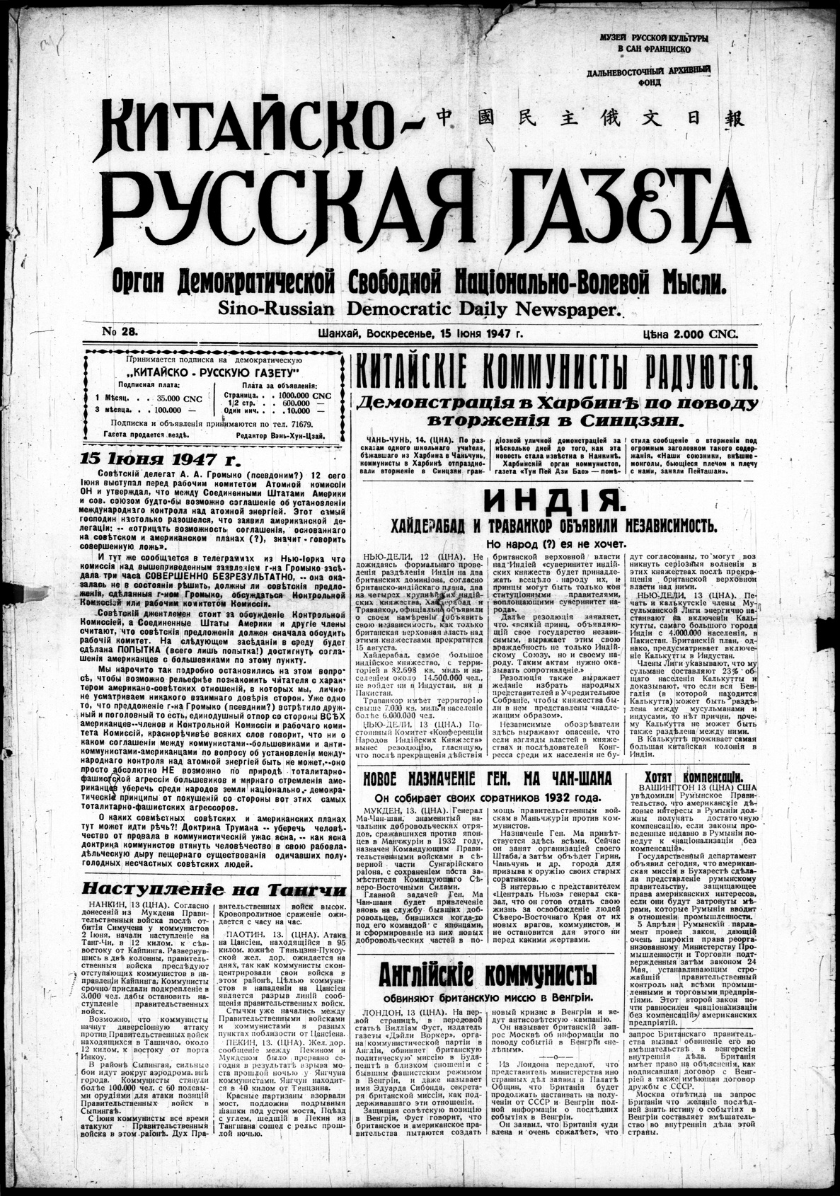 1947-1948. «Китайско-русская газета» (Шанхай)