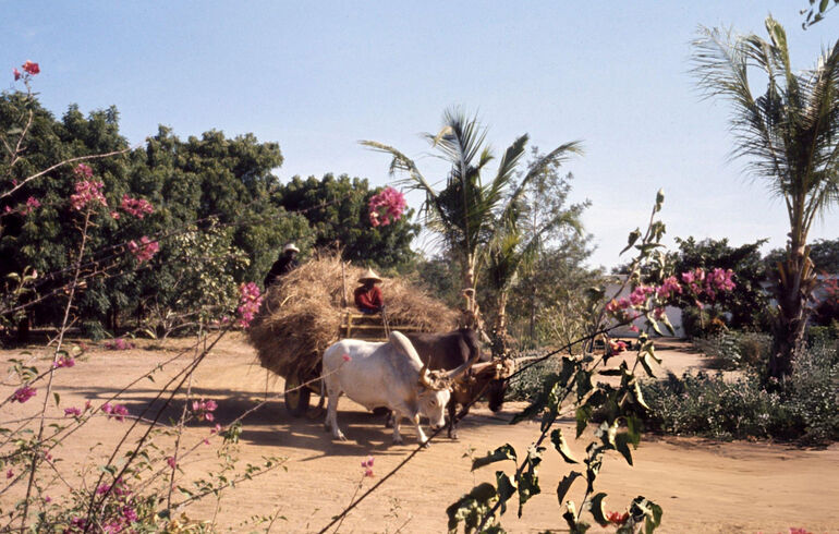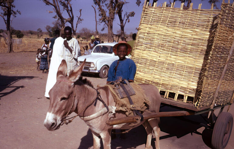 Фермеры на телеге с сеном в регионе Кеур Мусса