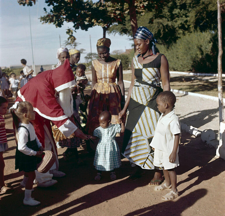 Дети в лодках-долблёнках в рыбацкой деревне