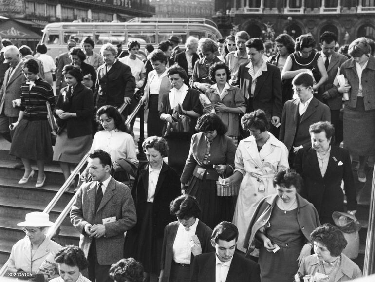 1950. Пассажиры спускаются по лестнице станции метро «Опера»