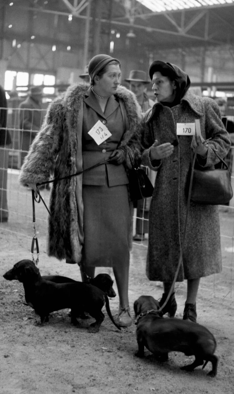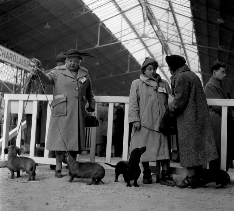 1953. Владельцы собак во время презентации своих питомцев на Парижской международной сельскохозяйственной выставке