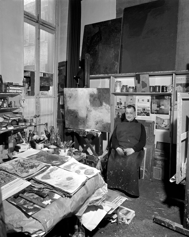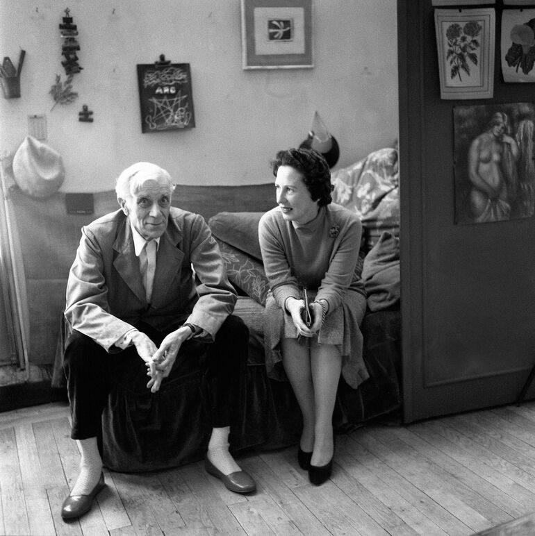 1957. Живописец и скульптор Жорж Брак и журналистка Розамонд Бернье, улица дю Дуанье