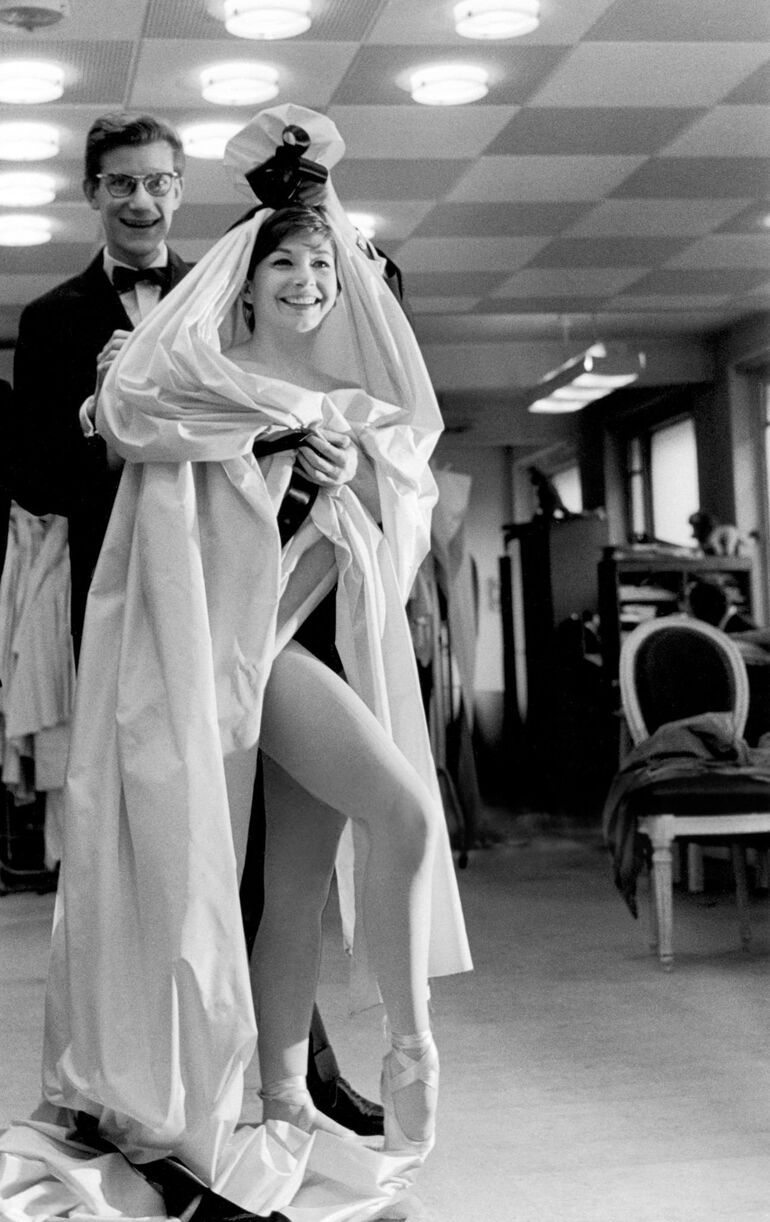 1959. Ив Сен-Лоран и Зизи Жанмер примеряют костюм «Кармен»