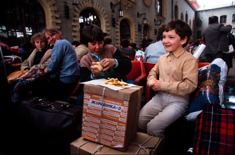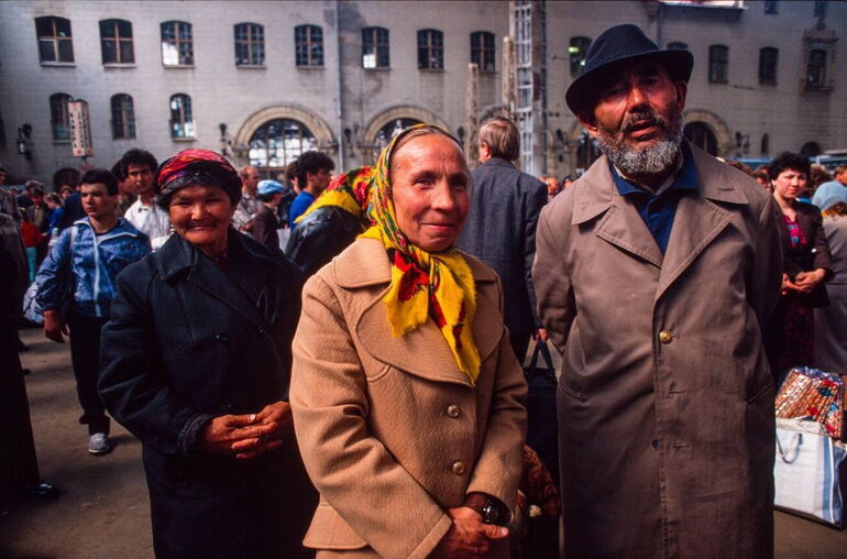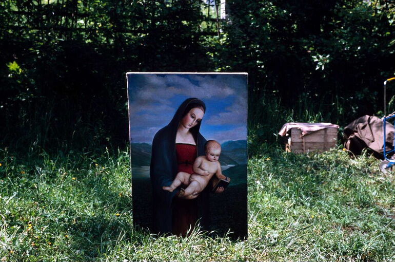 32. Картина с изображением Мадонны с младенцем, продающаяся на блошином рынке в Москве
