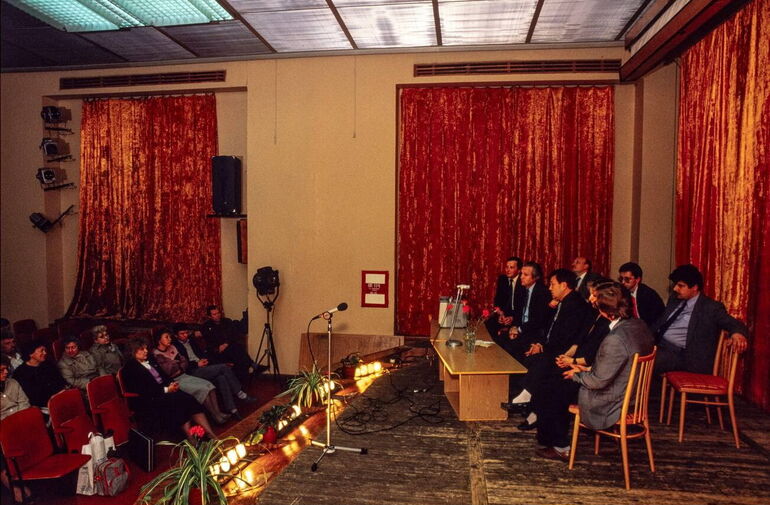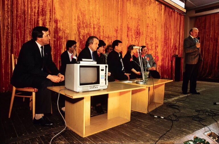 35. Съемочная группа отдела по борьбе с преступностью КГБ встречается с рабочими машиностроительного завода