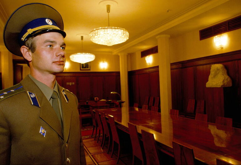 39. Сотрудник КГБ стоит в кабинете Юрия Адропова в штаб-квартире КГБ на Лубянке