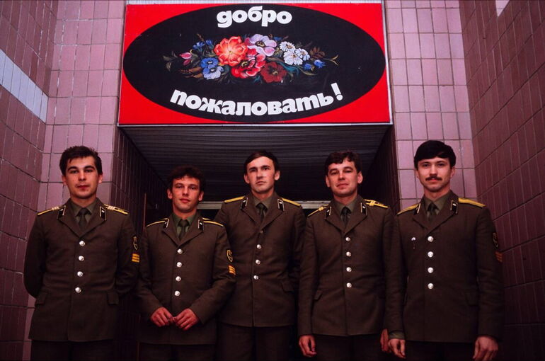 43. Высшая школа КГБ. Стажеры КГБ под надписью «Добро пожаловать»