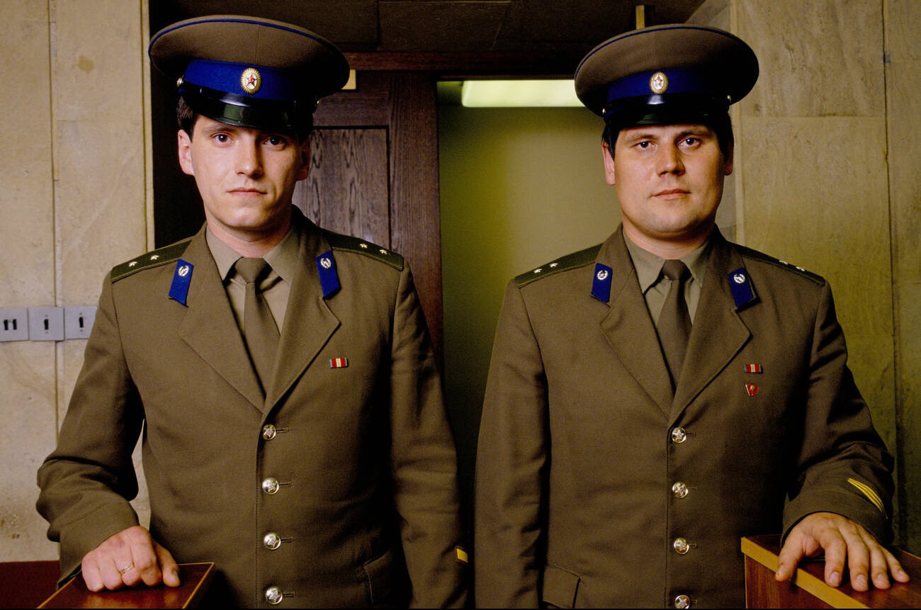 37. Два охранника КГБ у входа в штаб-квартиру КГБ