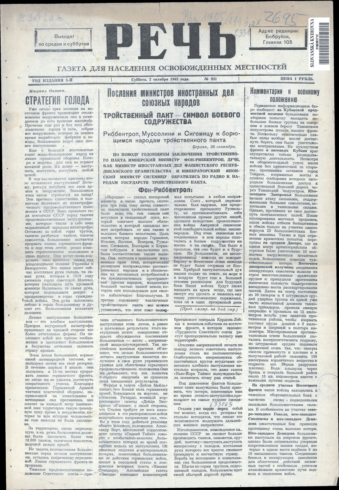 1943-1944. «Речь» (Бобруйск)