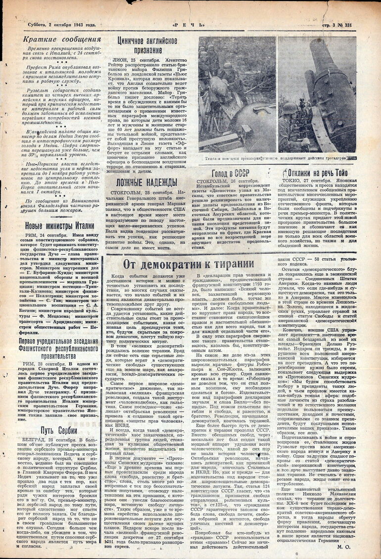 1938. «Голос России» (София)