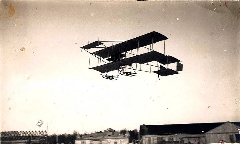 01. Инструктор Докучаев на учебном Фармане. Москва, Ходынское поле