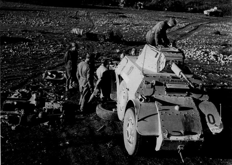 Итальянцы в Эритрее ремонтируют пушечный броневик "Аутоблиндада" АВ-41.