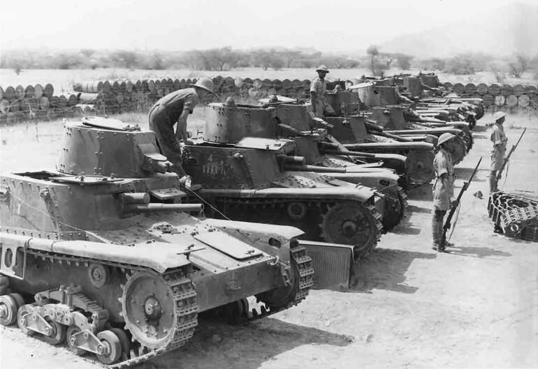 Эахваченные англичанами в Эритрее итальянские танки М11-39.