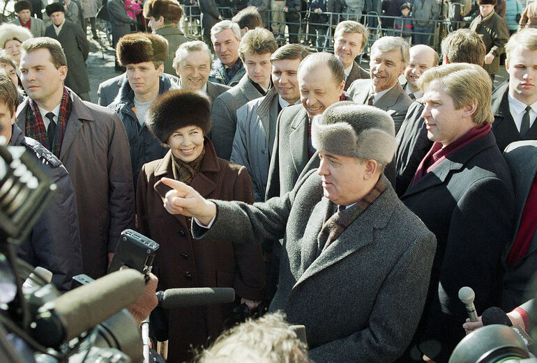Горбачев в своей знаменитой пыжиковой шапке дает интервью возле избирательного участка после участия в плебисците. Похоже, он вполне доволен происходящим, как и все присутствующие. Неужели они всерьез надеялись что этот фарс позволит сберечь то, что защитить и сохранить было уже невозможно?