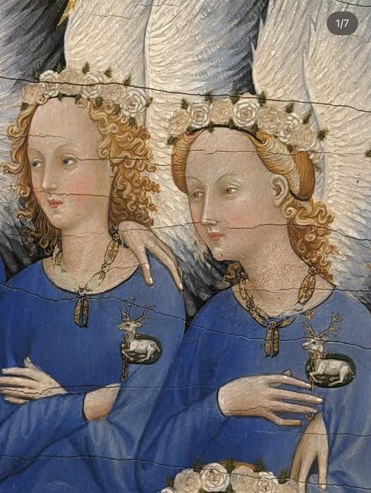 Белый олень есть на красном мантии Ричарда. Но самое интересное, что в преданности изображены и все 11 ангелов.