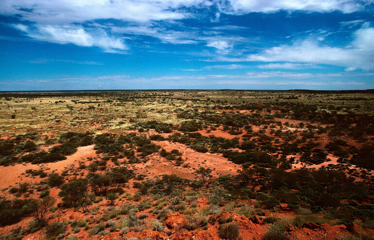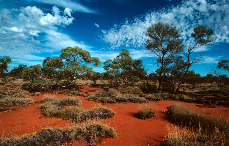 Акация аневризматическая (Mulga) и спинифекс (Spinifex, Triodia sp), пустыня Большая Виктория